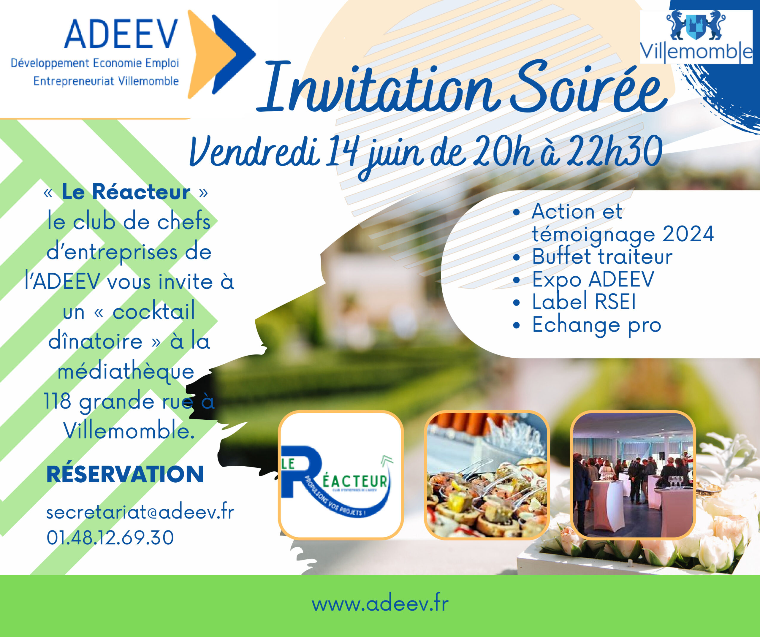 Le vendredi 14 juin, à partir de 20h, à l’issue de notre assemblée générale, nous vous convions à la soirée du club d’entreprises de l’ADEEV, baptisé “le Réacteur”. Cette rencontre promet d’être un moment riche en convivialité, échanges et partage professionnel.